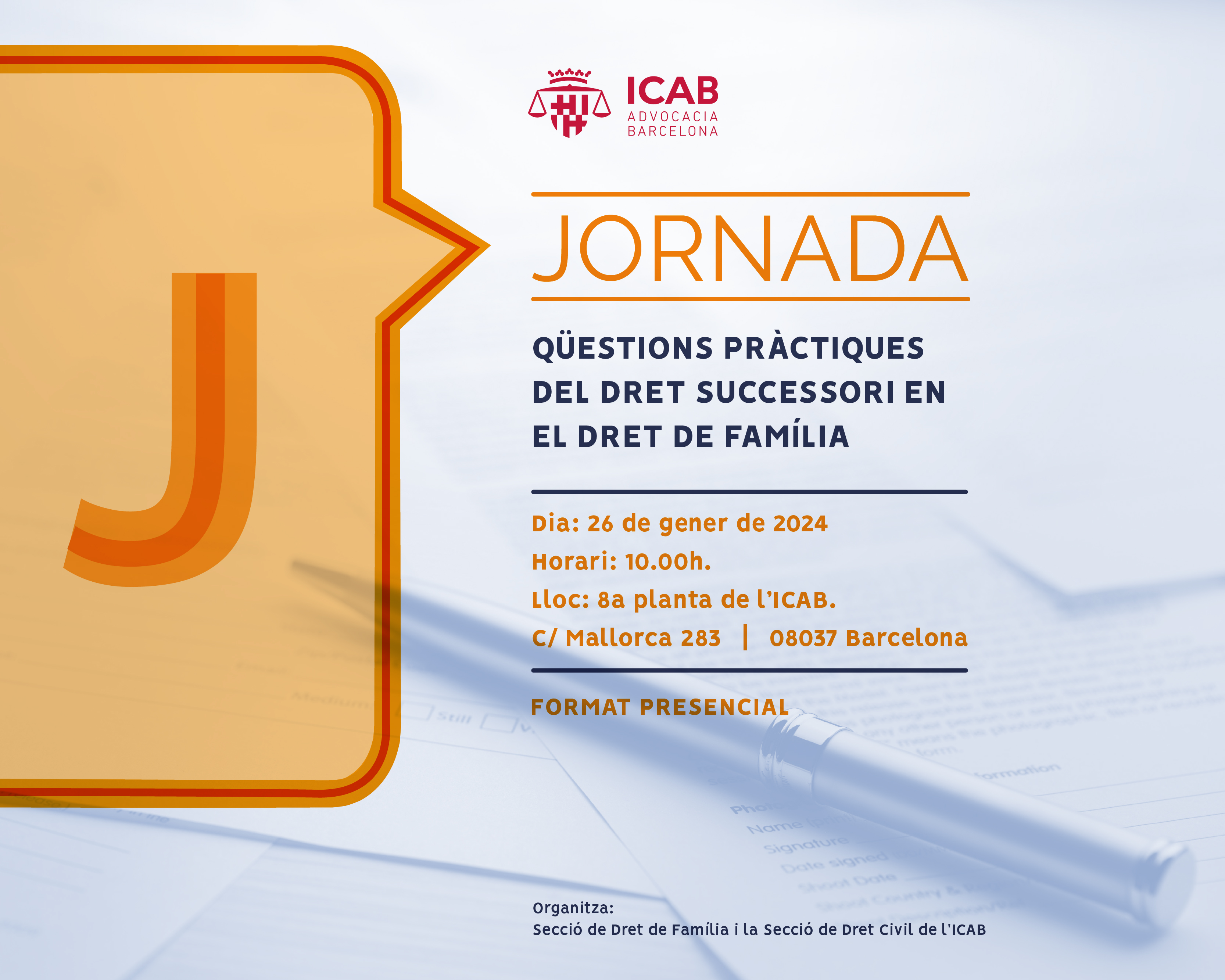 26/01/2024, 10h. Organitzen: Seccions de Dret de Família i de Dret Civil ICAB.