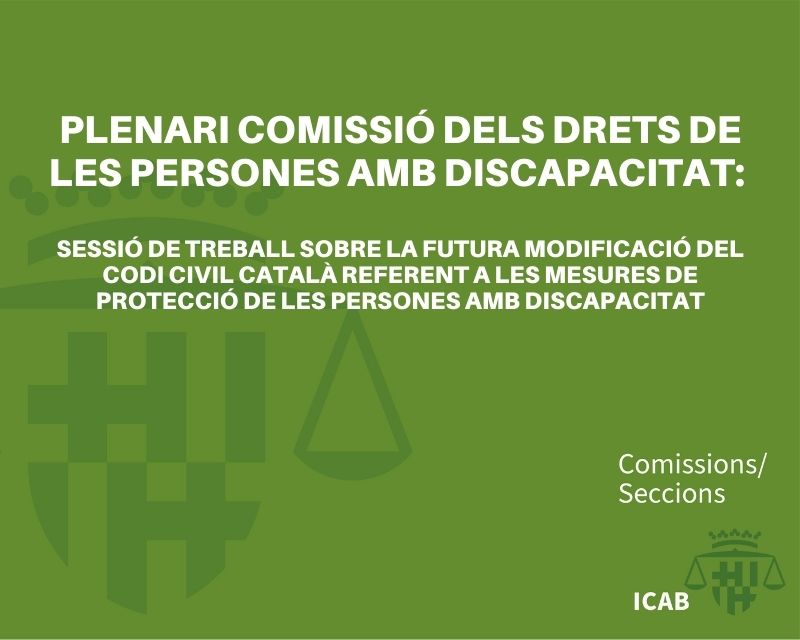 Plenari Comissió dels Drets de les Persones amb Discapacitat: Sessió de treball sobre la futura modificació del Codi Civil Català referent a les mesures de protecció de les persones amb discapacitat