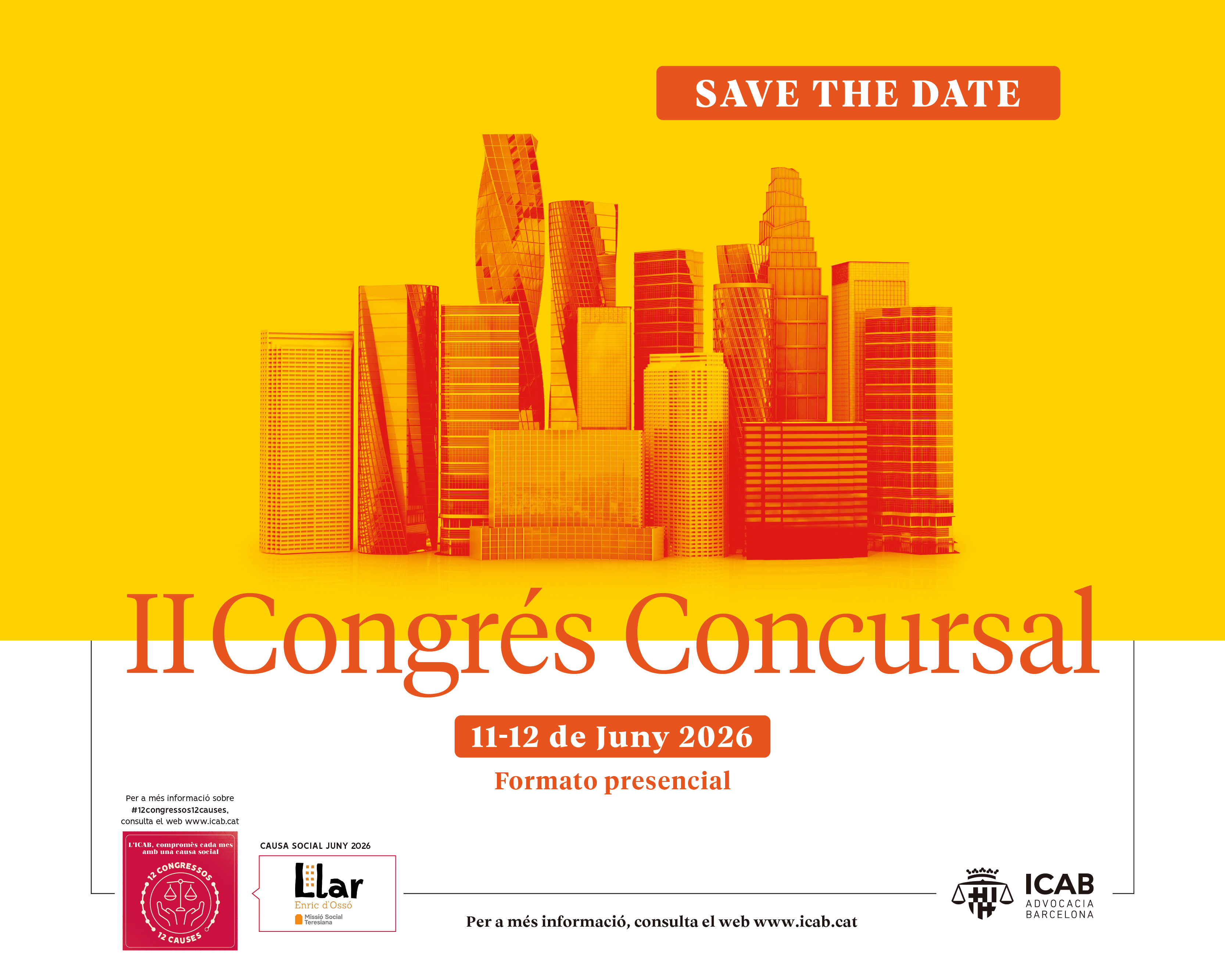 L’Il·lustre Col·legi de l’Advocacia de Barcelona acollirà els dies 11 i 12 de juny de 2026 el II Congrés Concursal.