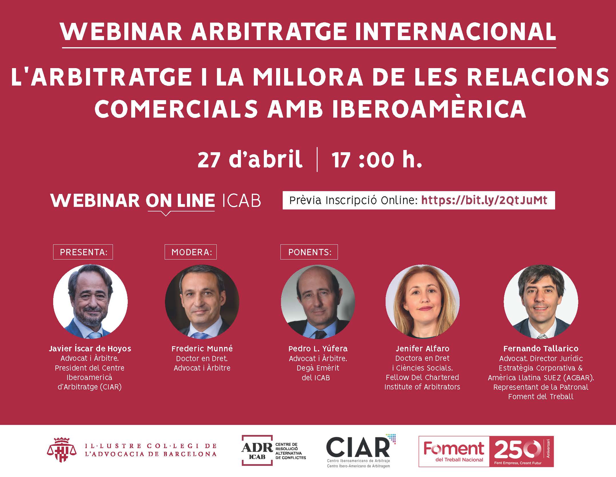 Webinar Arbitratge Internacional: L'arbitratge i la millora de les relacions comercials amb Iberoamèrica