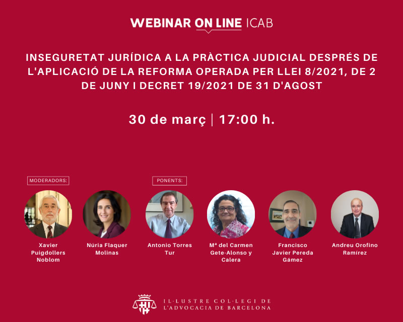 Webinar: Inseguretat jurídica a la pràctica judicial després de l'aplicació de la reforma operada per Llei 8/2021, de 2 de juny i decret 19/2021 de 31 d'agost