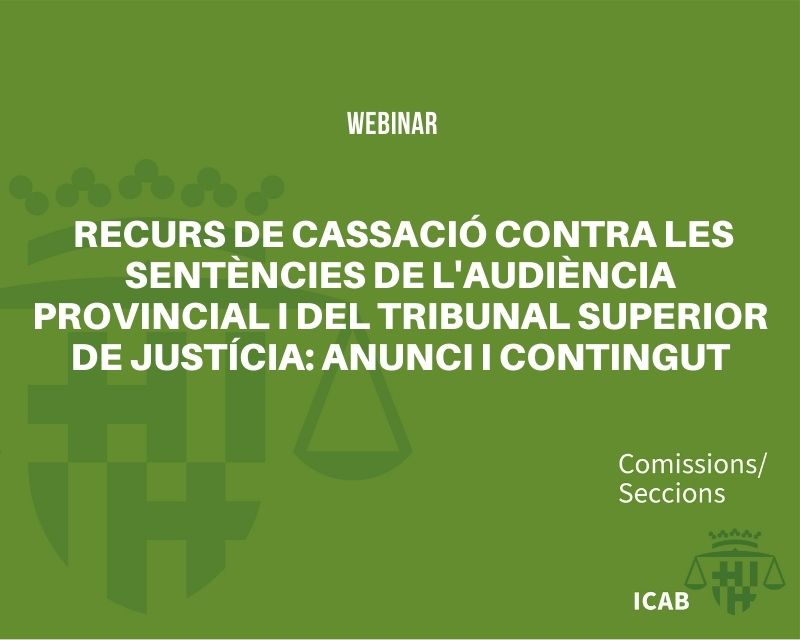 Webinar: Recurs de Cassació contra les Sentències de l'Audiència Provincial i del Tribunal Superior de Justícia: anunci i contingut
