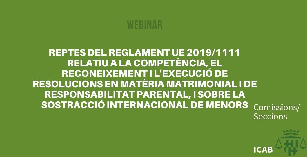 Webinar: Reptes del Reglament UE 2019/1111 relatiu a la competència, el reconeixement i l'execució de resolucions en matèria matrimonial i de responsabilitat parental, i sobre la sostracció internacional de menors