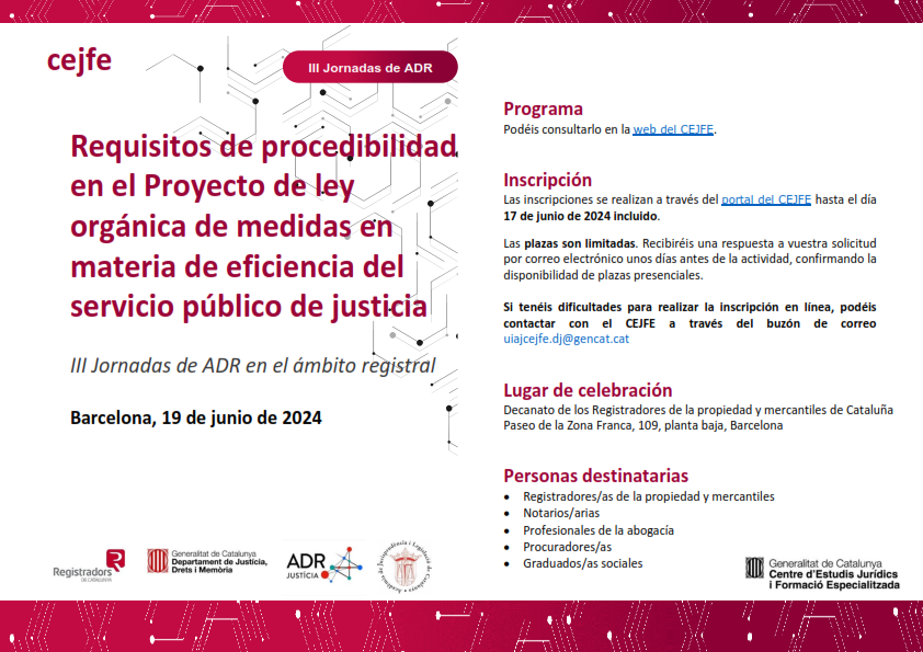 III Jornadas sobre ADR en el ámbito registral: Requisitos de procedibilidad en el proyecto de Ley orgánica de medidas en materia de eficiencia del servicio público de justicia