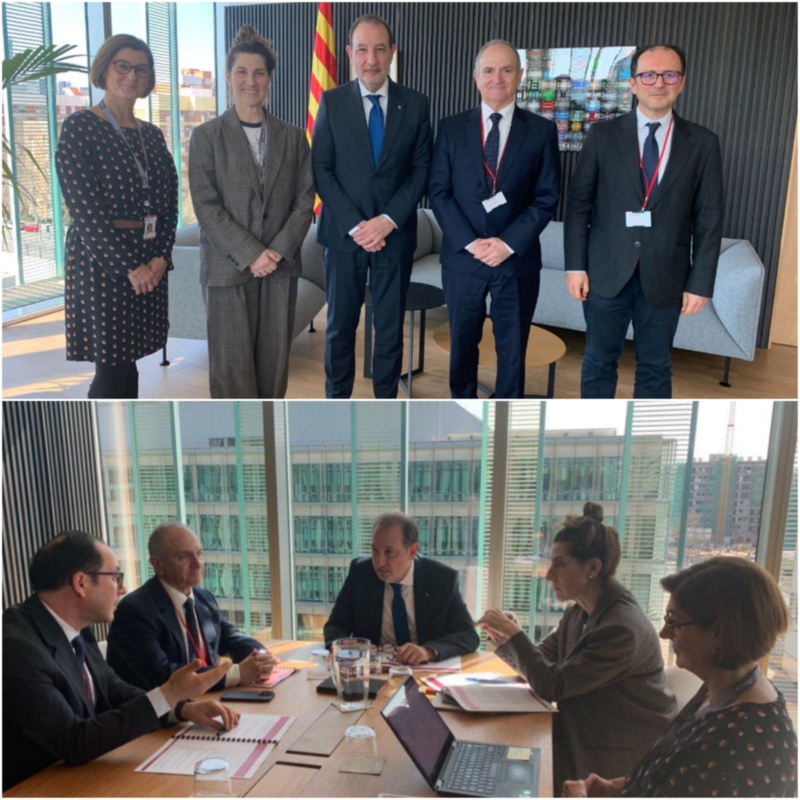 El decano del Colegio de la Abogacía de Barcelona, Jesús M. Sánchez, y el catedrático de Derecho Procesal de la Universitat de Barcelona y vocal de la Comisión de Normativa del ICAB Vicente Pérez Daudí se han reunido este miércoles 5 de marzo con el consejero de Justicia y Calidad Democrática, Ramon Espadaler; con la secretaria general de esta consejería, Maite Casado, y la directora general de Derecho, Entidades Jurídicas y Mediación de la Generalitat, Inmaculada Barral, para presentar las nuevas propuestas legislativas en las que está trabajando la abogacía de Barcelona.
