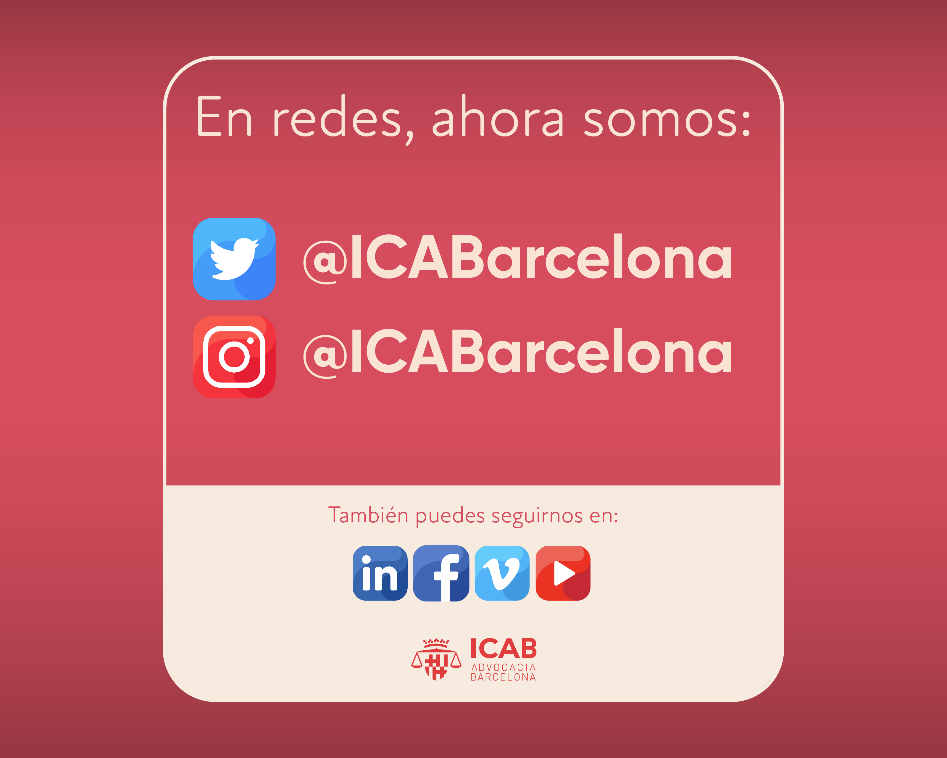 El Colegio de la Abogacía de Barcelona estrena denominación en las redes de Twitter e Instragram con el ususario @ICABarcelona