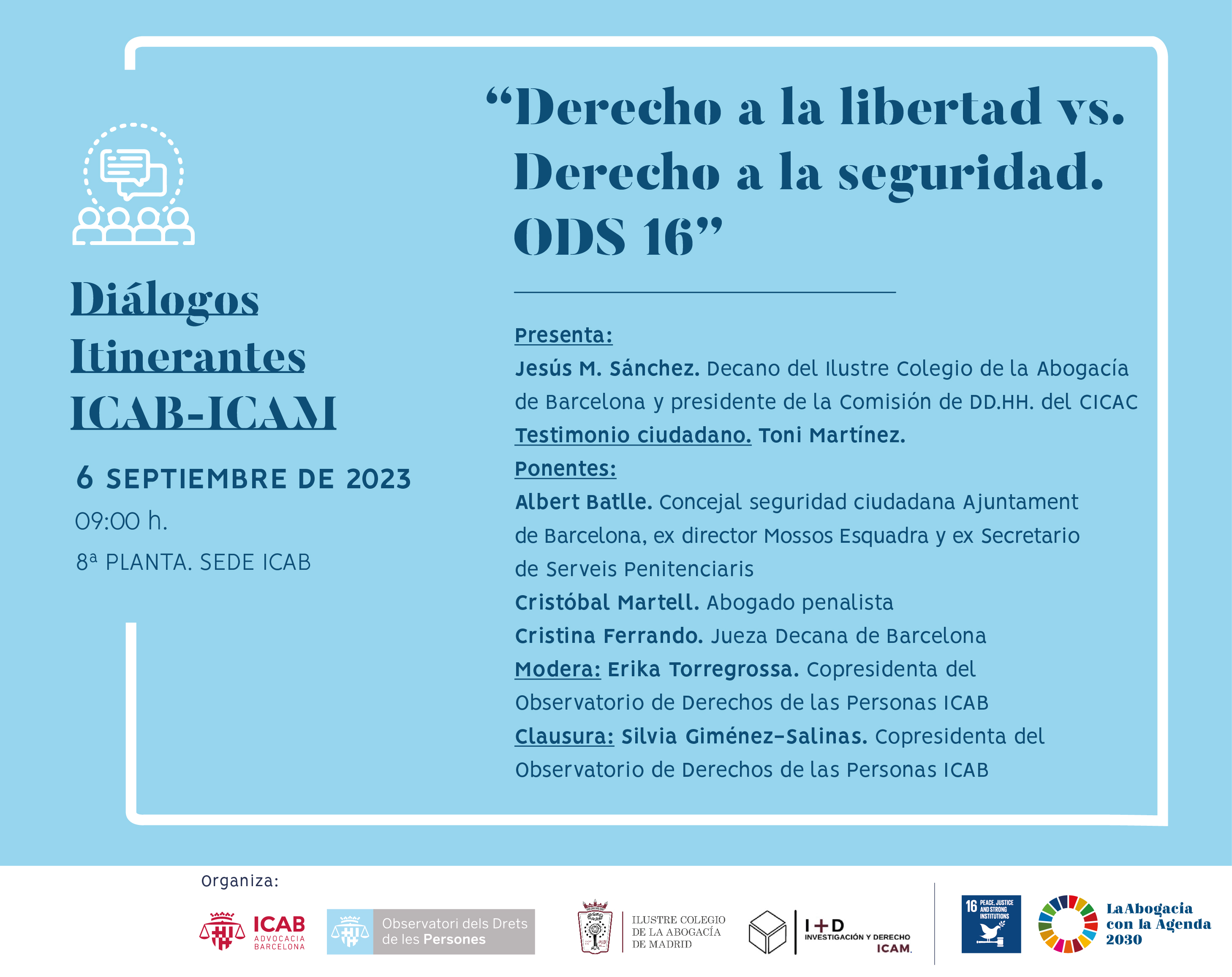 Diálogos itinerantes ICAB-ICAM: Diálogo sobre el Derecho a la libertad vs Derecho a la Seguridad - ODS16
