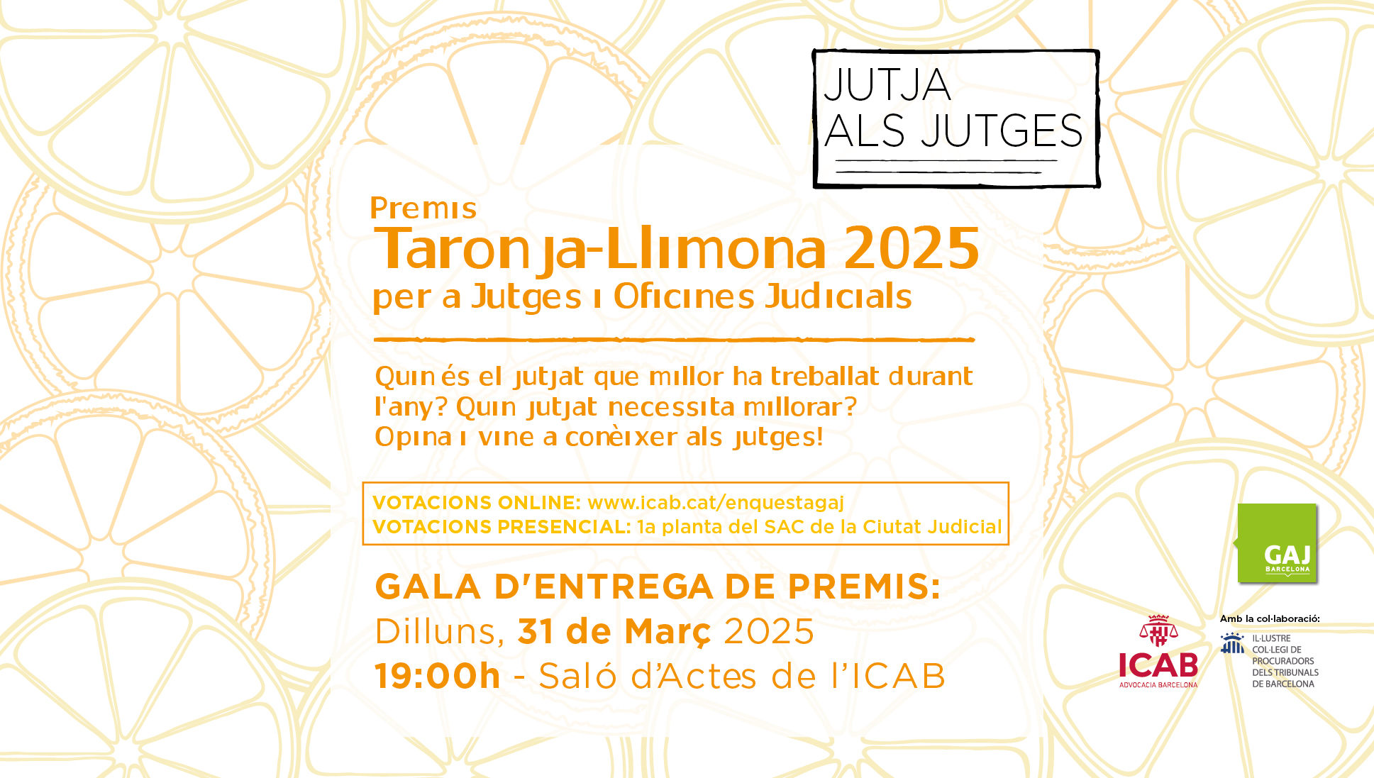 El lunes 31 de marzo de 2025 a las 19 h en el Salón de Actos del Palauet Casades tendrá lugar la Gala de entrega de los Premios Naranja y Limón 2025.