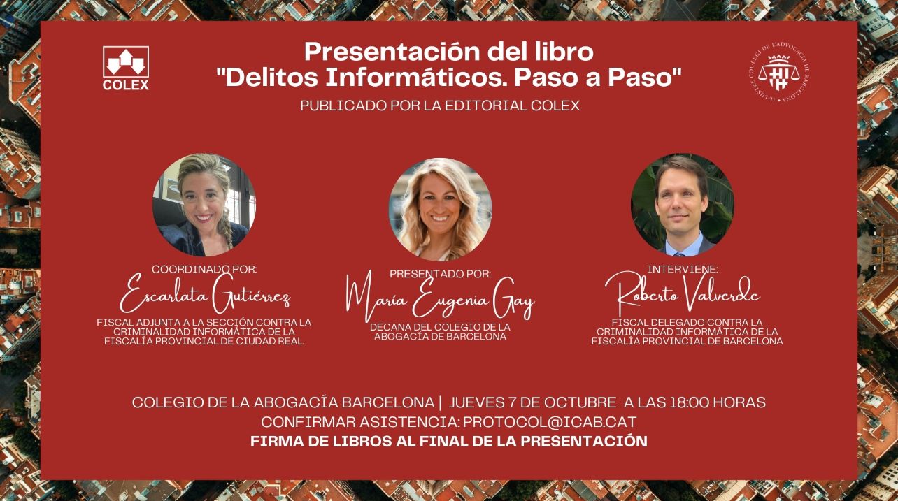 El jueves 7 de octubre de 2021, a las 18h, tendrá lugar en la 8ª planta del Ilustre Colegio de la Abogacía de Barcelona (ICAB) la presentación del libro "Delitos informáticos. Paso a Paso", publicado por la editorial Colex.