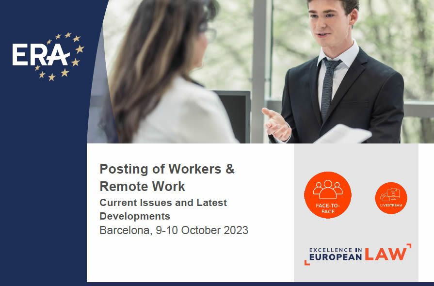 El Ilustre Colegio de la Abogacía de Barcelona (ICAB) acogerá los próximos 9-10 de octubre de 2023 el seminario “Posting of Workers & Remote Work: current issues and latest developments”, organizado por la Academia de Derecho Europeo (ERA).