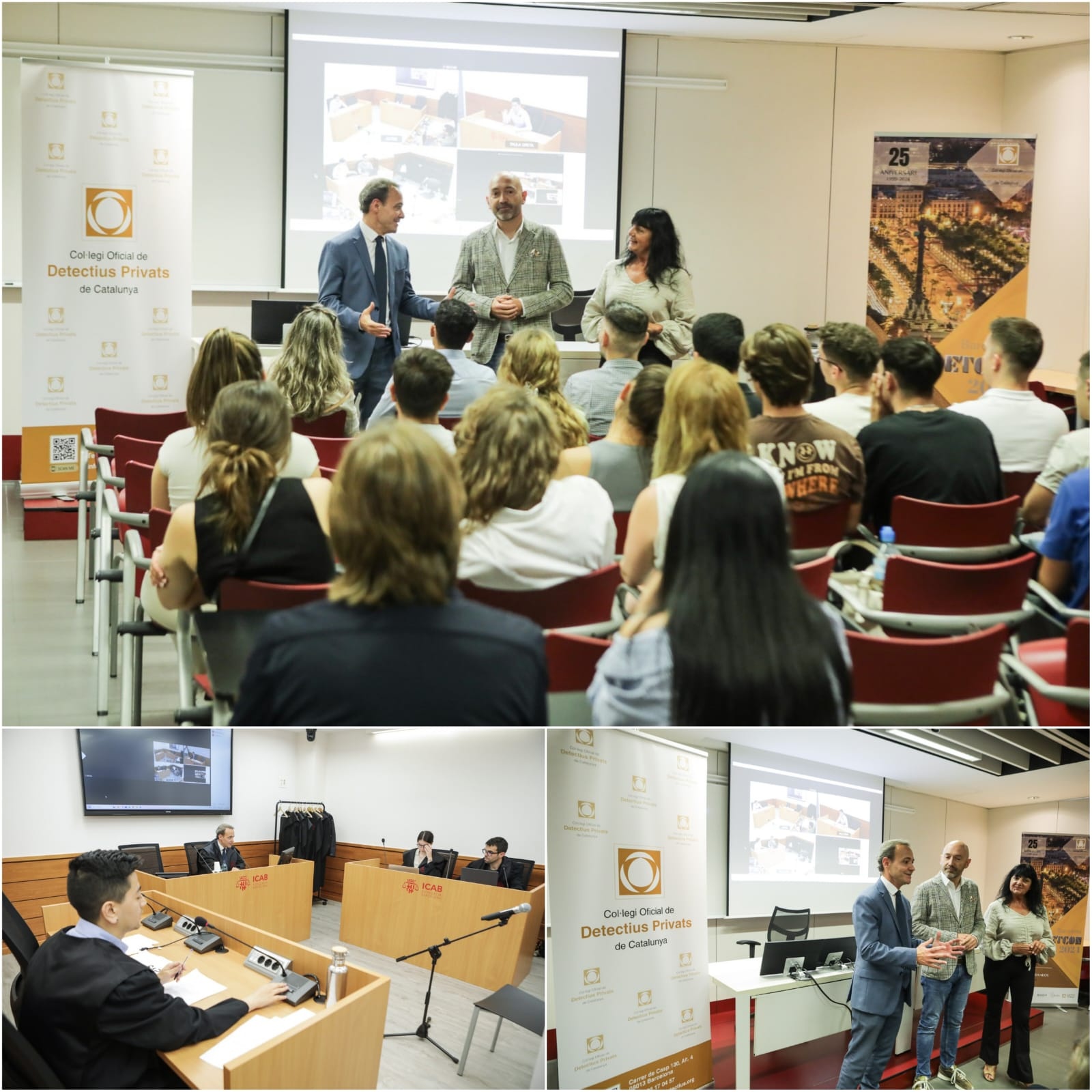Este jueves, 6 de junio de 2024, asistentes al X Congreso DETCON organizado por el Colegio Oficial de Detectives Privados de Catalunya, han participado en una simulación judicial de Civil con alumnado de la EPJ en la Sala de Vistas del Colegio y en la posterior sesión de networking entre detectives y abogados.