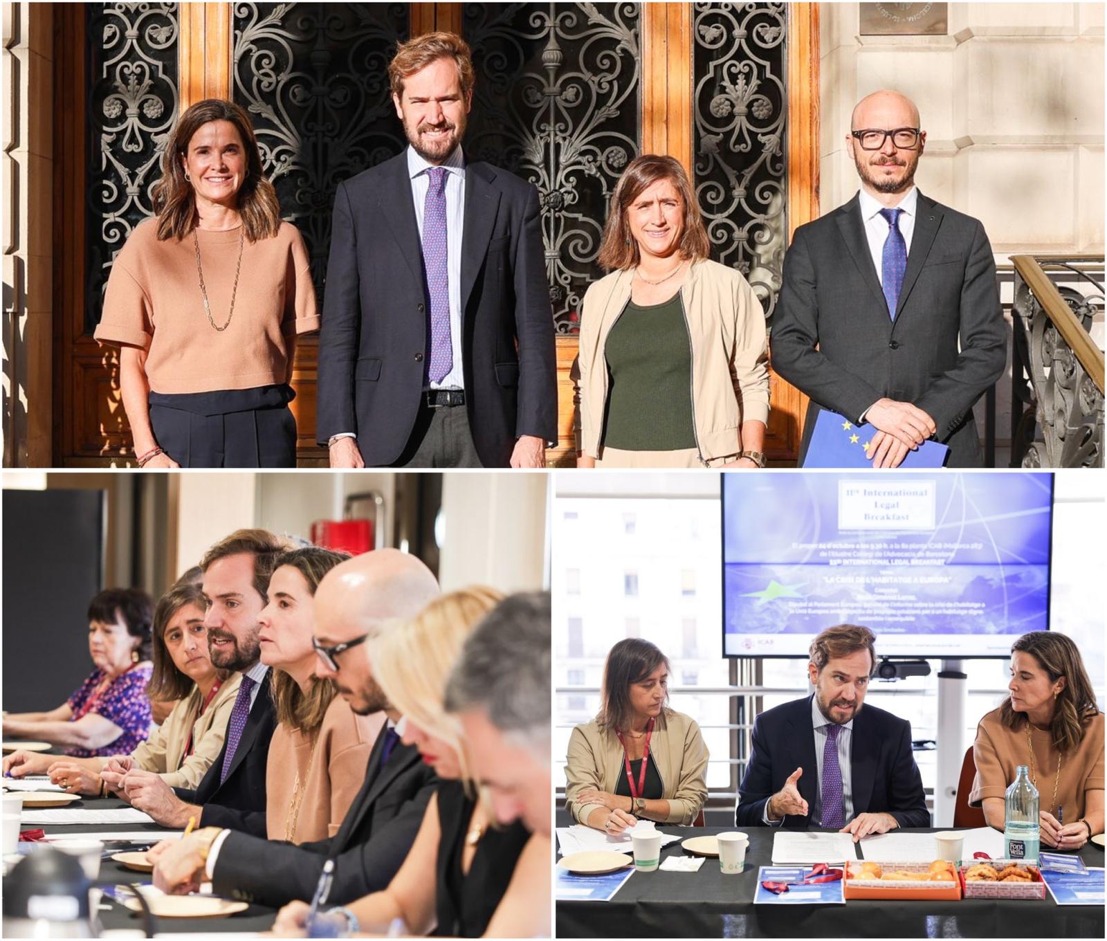 La sesión ha contado con la participación de Natàlia Martí, diputada del ICAB responsable de la Comisión de Relaciones Internacionales – Formación Internacional; de Marta Legarreta, presidenta de la Sección de Derecho Civil del ICAB; y de Sergi Barrera, jefe de la Oficina del Parlamento Europeo en Barcelona.