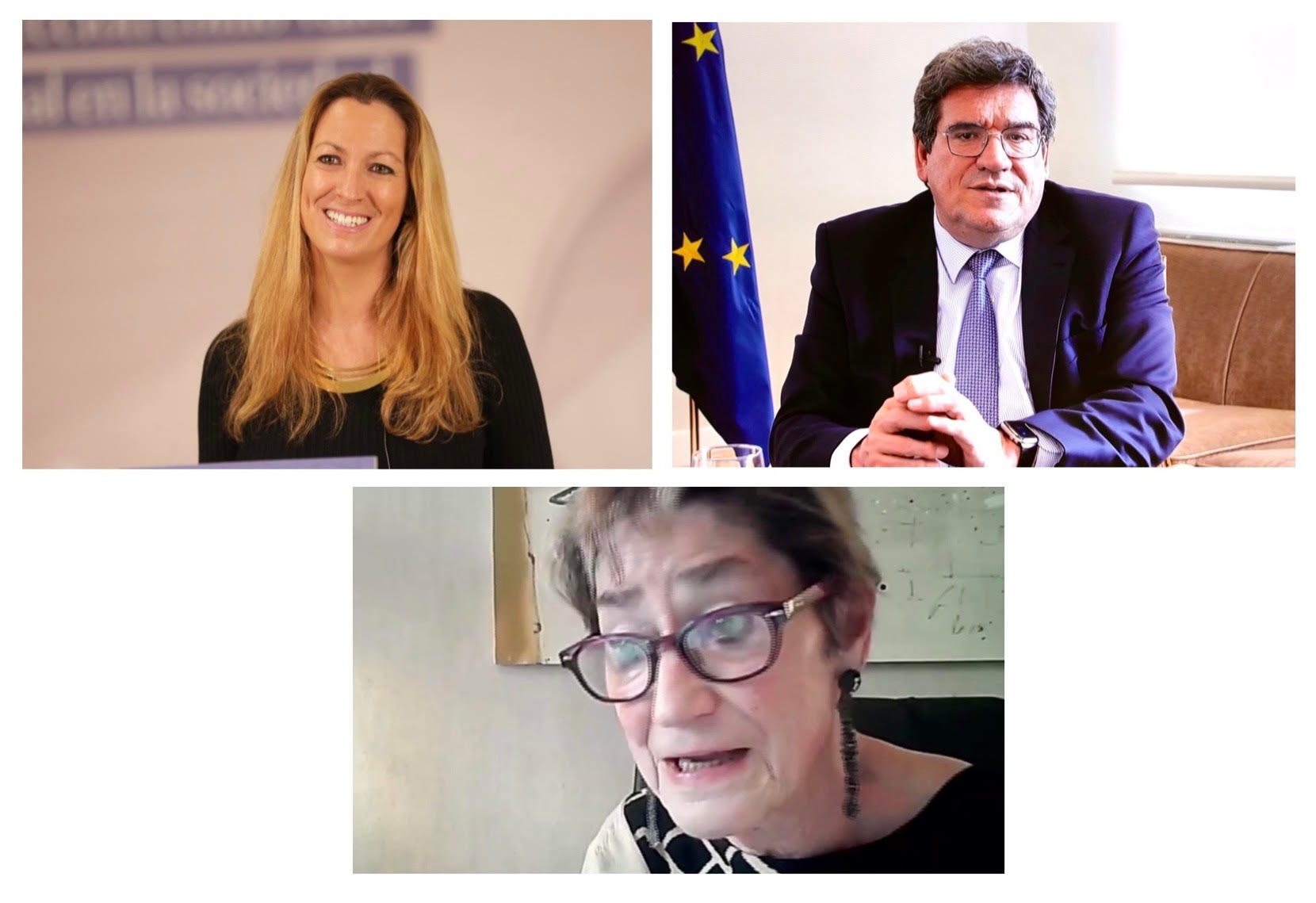 Barcelona, 18 de febrero de 2021. La decana del Colegio de la Abogacía de Barcelona, Mª Eugènia Gay, la presidenta del Consejo General de la Abogacía Española, Victoria Ortega; y el ministro de Inclusión, Seguridad Social y Migraciones del Gobierno, José Luis Escrivá han inaugurado esta mañana el ‘I Congreso sobre el principio de transparencia en la contratación predispuesta y su proyección como valor transversal en la sociedad’.