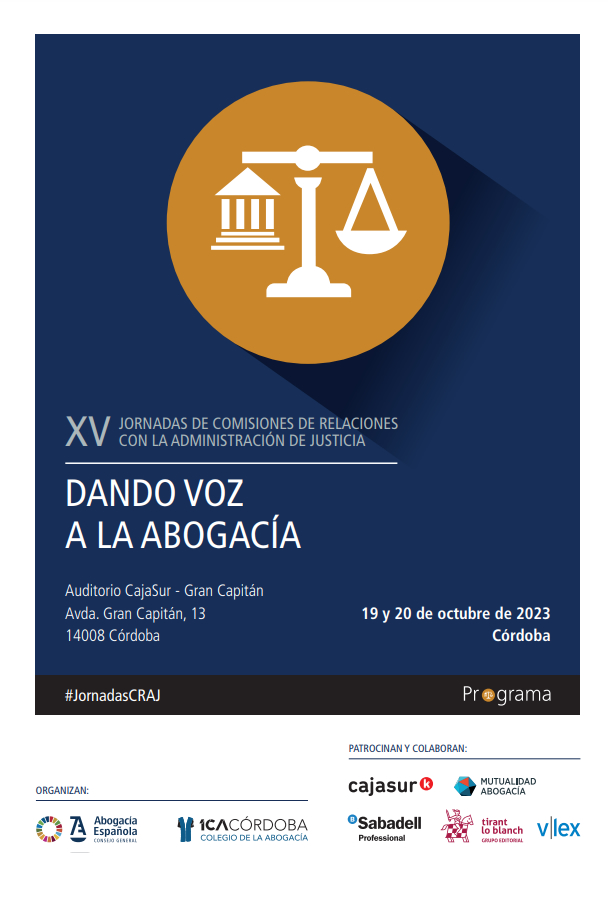 Los días 19 y 20 de octubre de 2023 se llevarán a cabo en Córdoba las XV Jornadas de Comisiones de Relaciones con la Administración de Justicia (CRAJ) bajo el lema Dando voz a la abogacía.