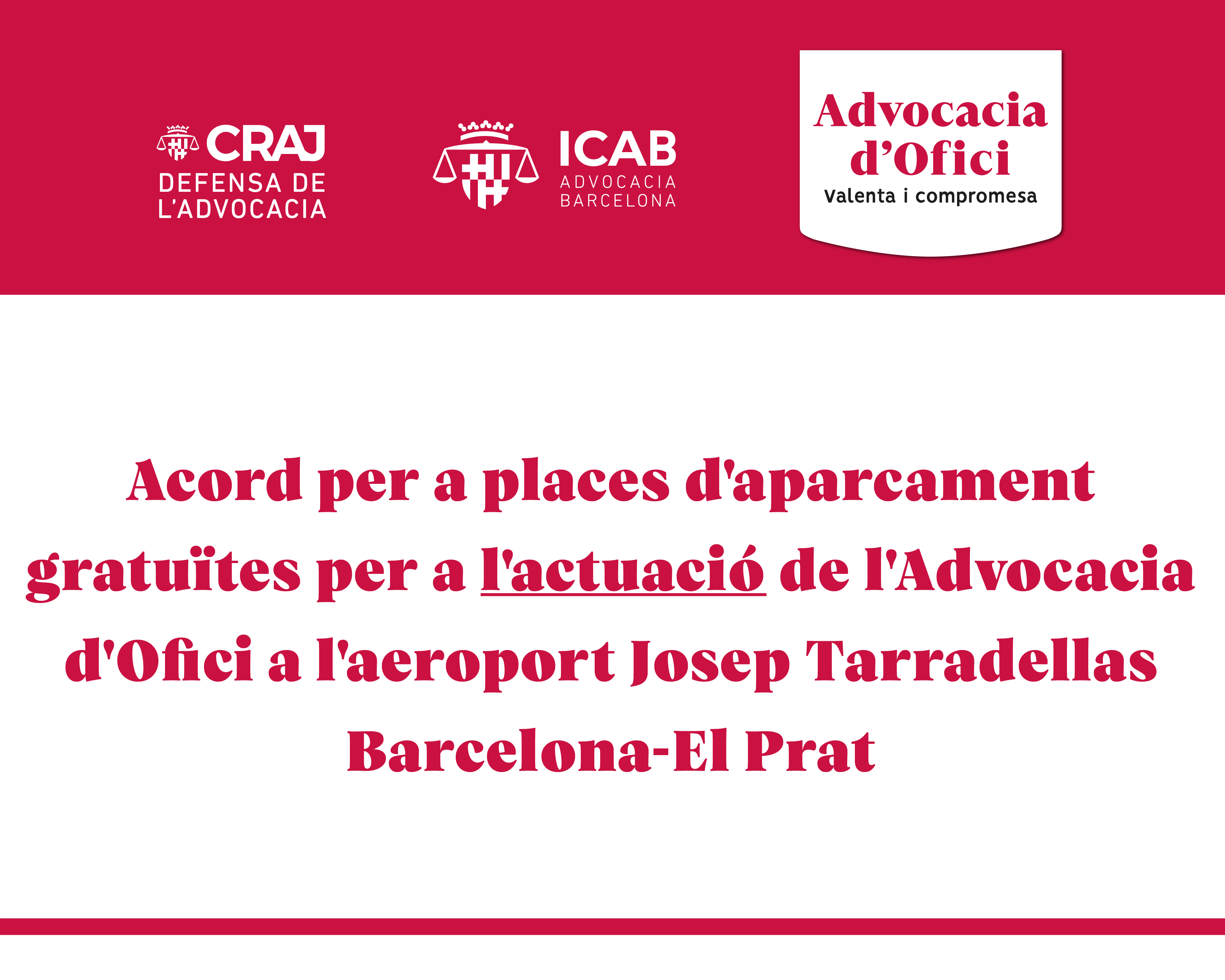 ACTUALIZACIÓN - Acuerdo para plazas de aparcamiento gratuitas para la actuación de la Abogacía de Oficio en el aeropuerto Josep Tarradellas Barcelona-El Prat