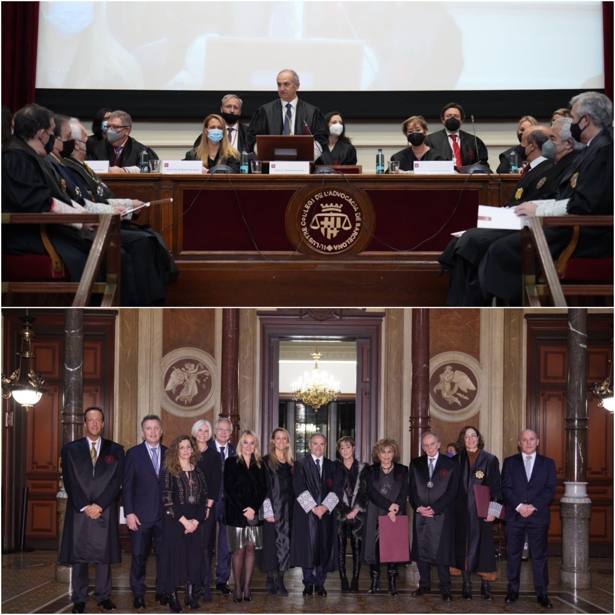 El acto ha sido presidido por la Junta de Gobierno del ICAB - encabezada por el decano Jesús Sánchez y la vicedecana Susana Ferrer, y ha contado con la asistencia de Mª Eugènia Gay, delegada del Gobierno en Cataluña y decana emérita del ICAB; de Victoria Ortega, presidenta del Consejo General de la Abogacía Española; de Joan Ramon Puig Pellicer, presidente de l’Advocacia Catalana; de Jesús Barrientos, presidente del TSJC; de Francisco Bañeres, fiscal Superior de Cataluña; de Antonio Recio, presidente de la Audiencia Provincial de Barcelona, de los decanos eméritos del ICAB Josep Maria Antràs, Eugeni Gay, Jaume Alonso Cuevillas, Silvia Giménez-Salinas, Pedro Yúfera, Oriol Rusca y Josep Maria Balcells; del presidente de la Academia de Jurisprudencia y Legislación de Cataluña, Francesc Tusquets; del secretario por la Administración de Justicia, Eusebi Campdepedrós i Pucurull; del director general de Derecho, Entidades Jurídicas y Mediación, Joan Ramon Casals, entre otras autoridades.