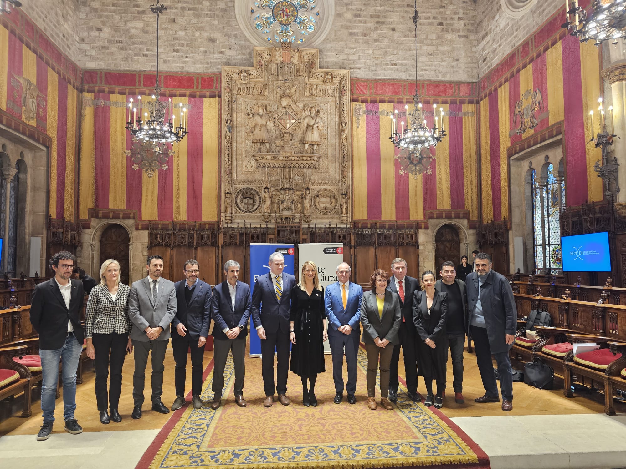 Este martes, 28 de noviembre de 2023, por la mañana, en el Saló de Cent del Ayuntamiento de Barcelona, se ha llevado a cabo el acto de presentación del Pacto de ciudad por la salvaguarda de los Derechos Humanos, que coincide con el 75º aniversario de la Declaración Internacional de los DDHH.