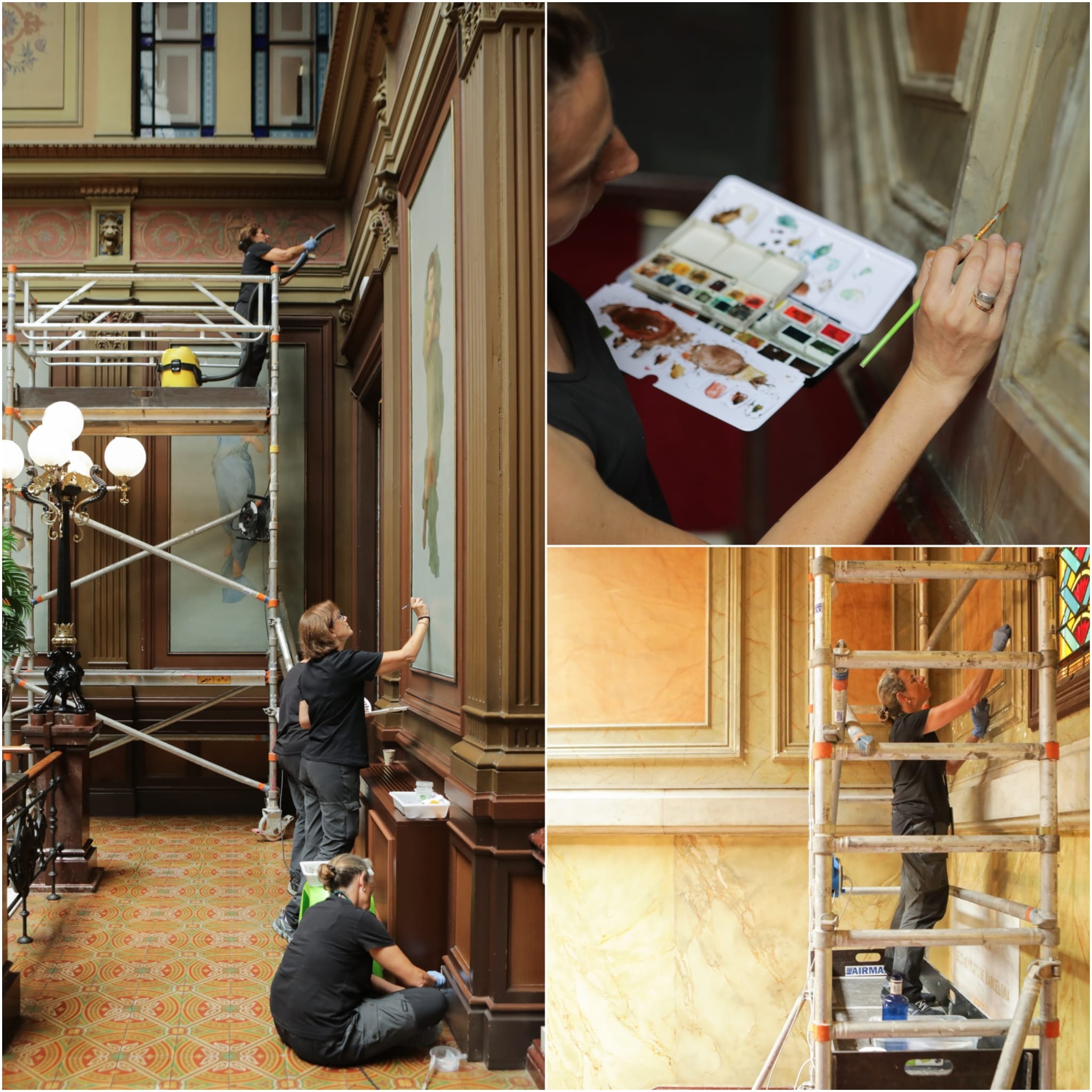 Durante el tiempo que han durado estos trabajos, se han realizado mejoras en la pintura, el yeso y la madera para el debido mantenimiento de estos bienes culturales, referentes a la ciudad y al país. Asimismo, se han retocado los pequeños desperfectos y se han fijado las posibles afectaciones por humedad a la emblemática escalinata del patio. Además, se han limpiado las pinturas murales que adornan el espacio decimonónico.