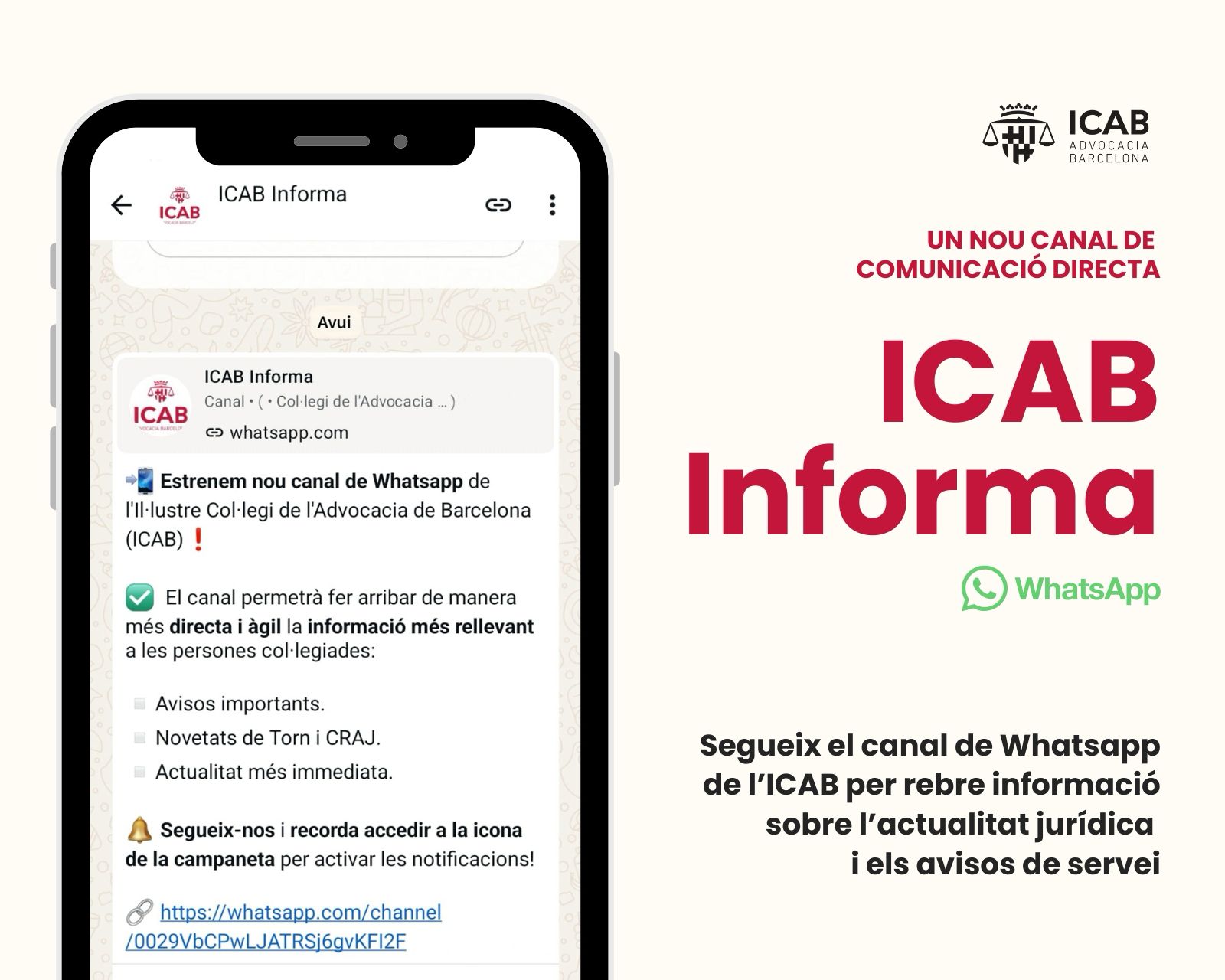 Estrenamos ‘ICAB Informa’, el nuevo canal de WhatsApp del Colegio de la Abogacía de Barcelona