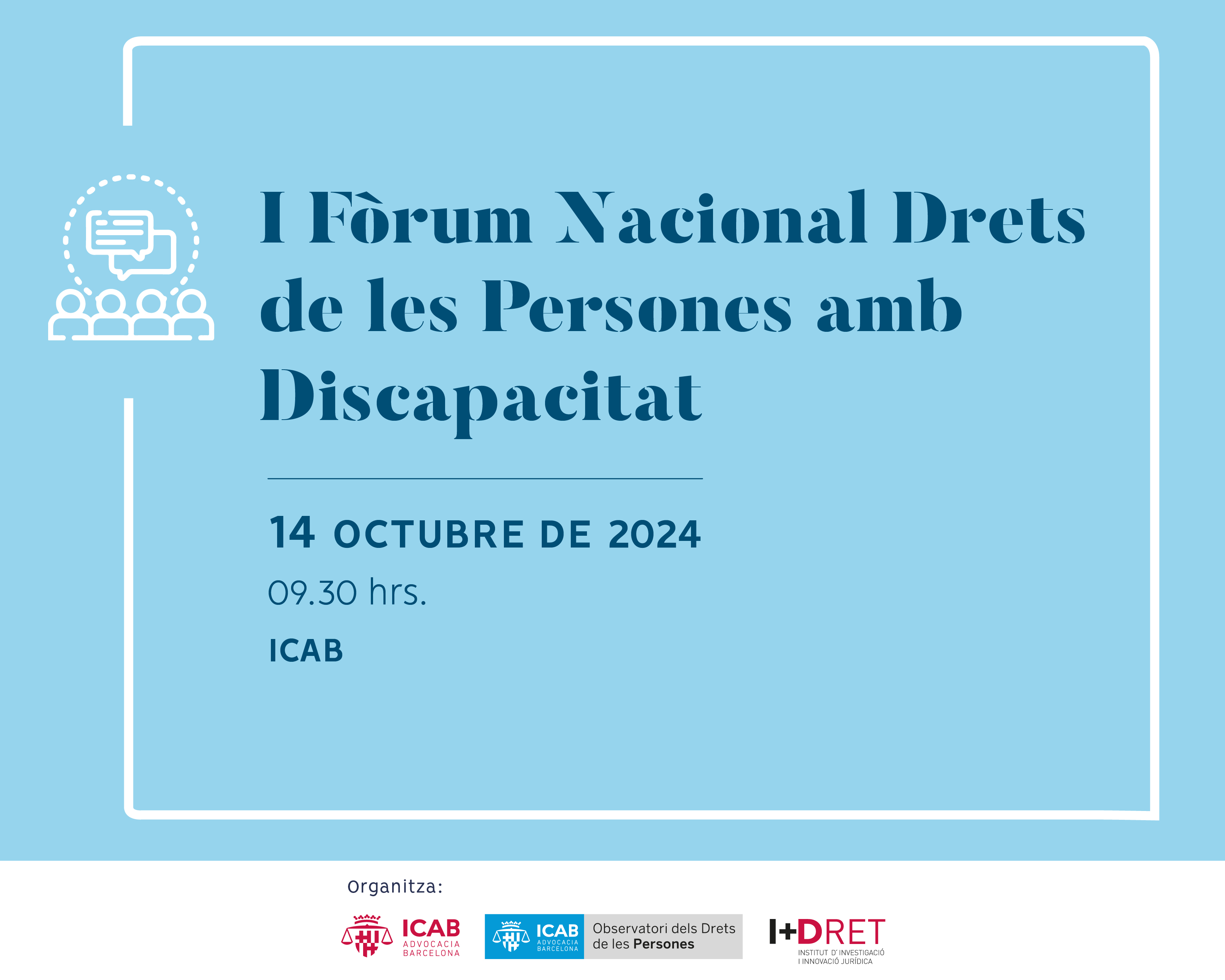 El próximo lunes, 14 de octubre de 2024, tendrá lugar en formato presencial en la sede del Ilustre Colegio de la Abogacía de Barcelona la primera edición del foro, organizado por el Observatorio de los Derechos de las Personas del ICAB y I+DRET.