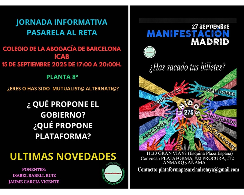 Plataforma Pasarela al RETA: Jornada Informativa Pasarela al RETA el 15 de septiembre y Manifestación en Madrid el 27 de septiembre de 2025