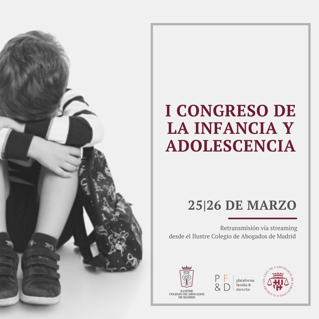 Los días 25 y 26 de marzo de 2021 se celebró el I Congreso de la Infancia y la Adolescencia, organizado conjuntamente por el Ilustre Colegio de Abogados de Madrid (ICAM), la Plataforma Familia & Derecho y el llustre Colegio de la Abogacía de Barcelona (ICAB).