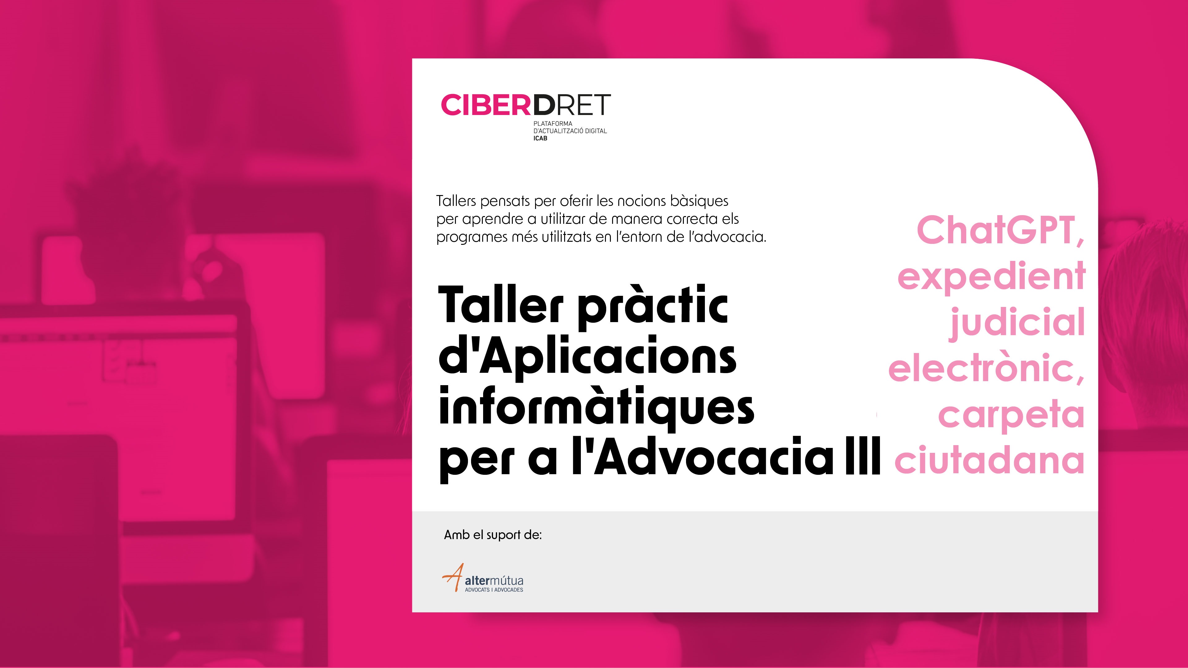 Desde CIBERDRET os ofrecemos una nueva formación, organizando este taller como ampliación de los que se impartieron anteriormente. En esta ocasión hemos profundizado en el uso de la IA aplicada a la abogacía y en el conocimiento de diferentes recursos que nos facilitarán la interactuación con la administración.