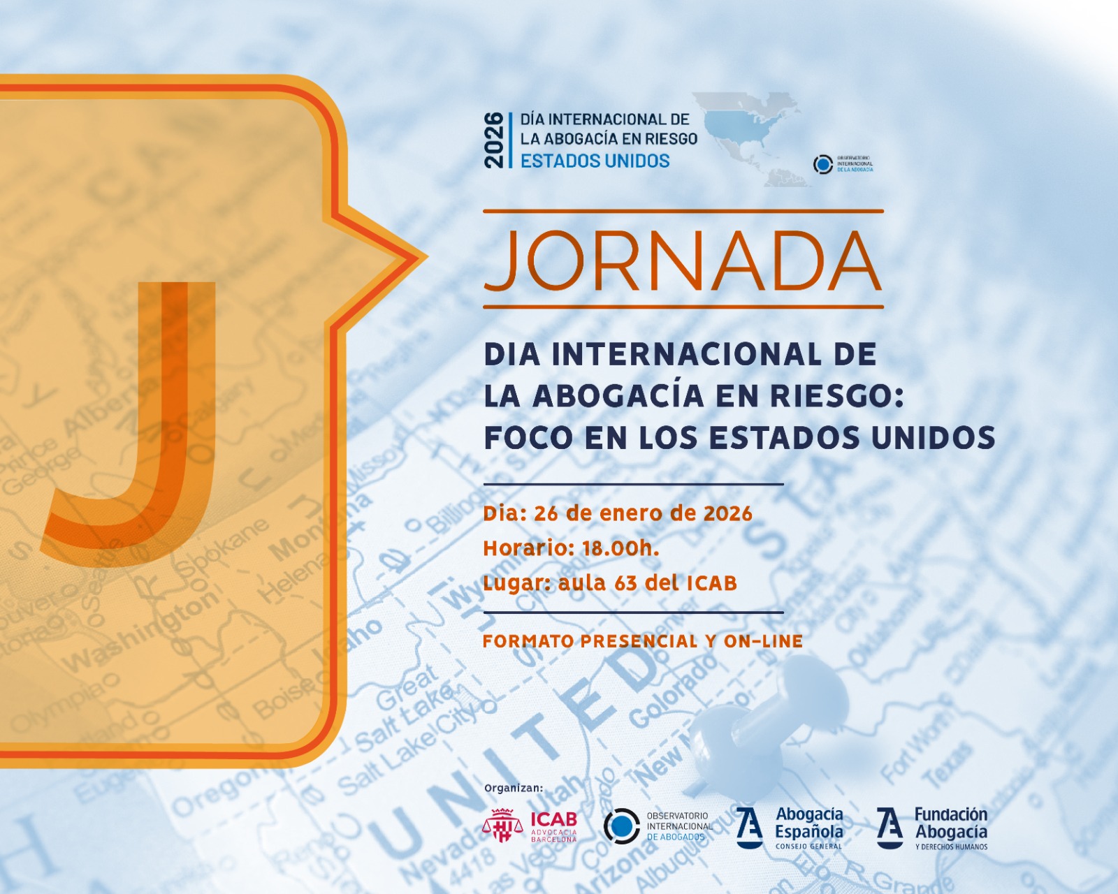 Inicio: 26/01/2026, a las 18 h. Formato: híbrido (Presencial en el aula 63 del Ilustre Colegio de la Abogacía de Barcelona (ICAB), y online: recibiréis el enlace una vez os inscribáis). Organizan: ICAB, OIAD, CGAE, Fundación Abogacía y DDHH.