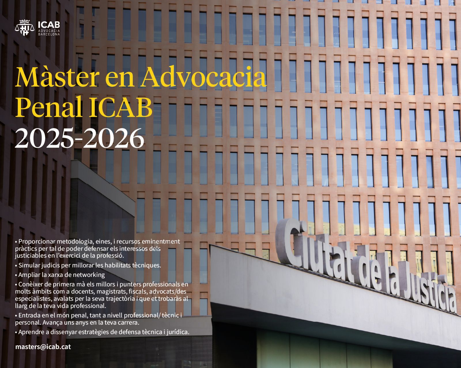 El programa, fechas, y profesorado está sujeto a posibles cambios. El ICAB se reserva el derecho de cancelar el programa si considera que no se cumplen con los requisitos necesarios para el éxito del mismo.