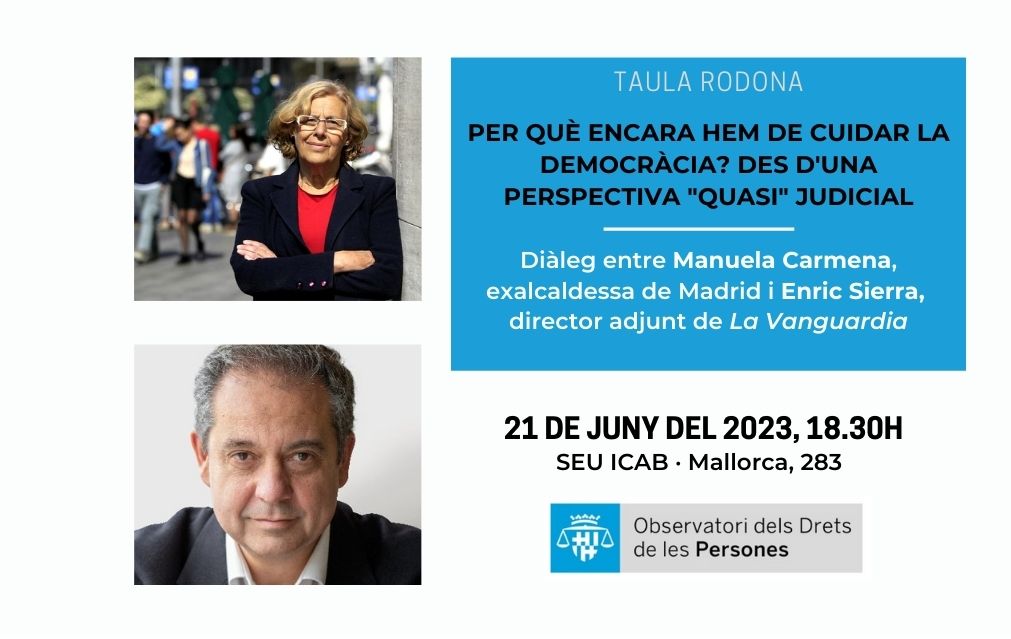 21/06/23, a las 18.30h, en el ICAB. Organizada por el Observatorio de los Derechos de las Personas.