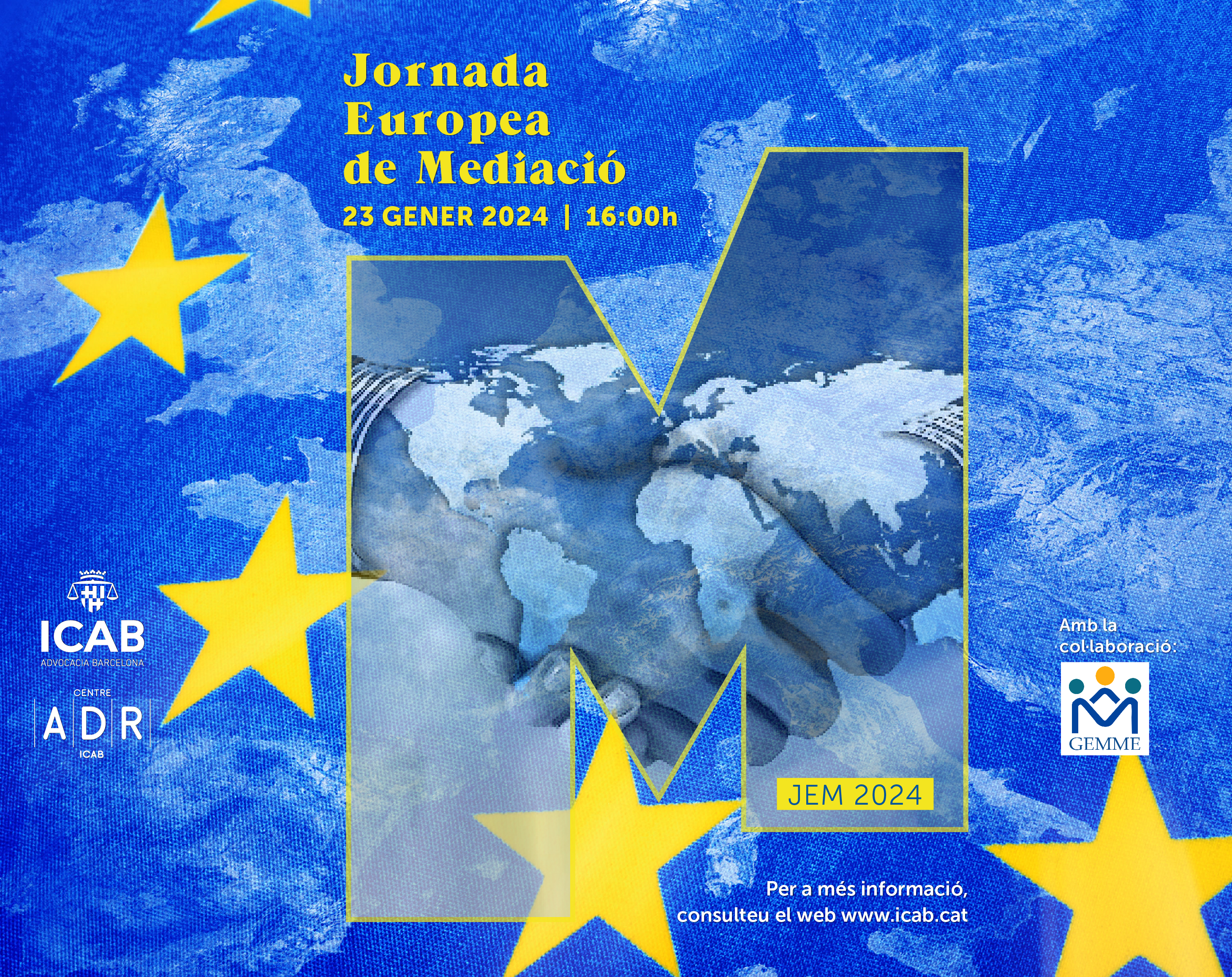 Hasta el 3 de junio de 2024 podéis consultar gratuitamente los vídeos de la Jornada Europea de la Mediación (JEM) celebrada en el Ilustre Colegio de la Abogacía de Barcelona (ICAB) el 23 de enero.