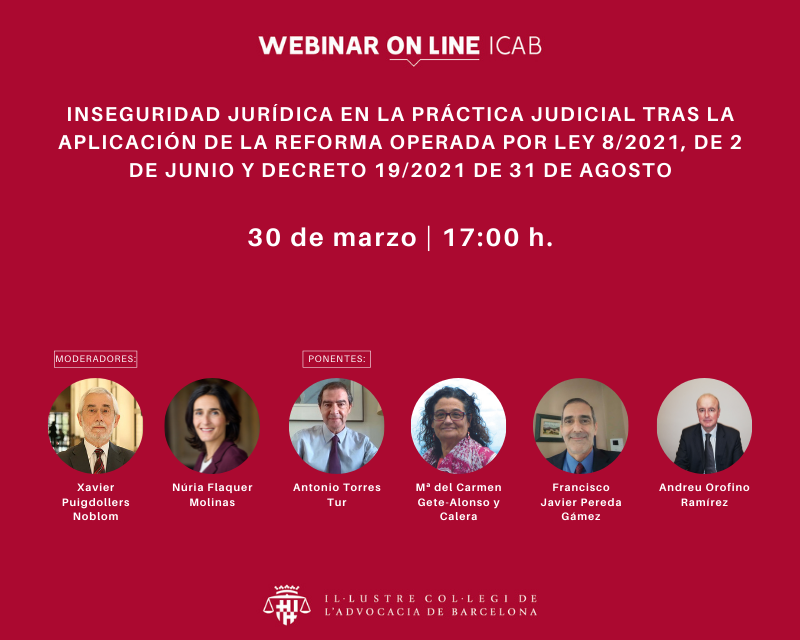 Webinar: Inseguridad jurídica en la práctica judicial tras la aplicación de la reforma operada por ley 8/2021, de 2 de junio y decreto 19/2021 de 31 de agosto