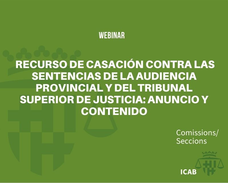 Webinar: Recurso de Casación contra las Sentencias de la Audiencia Provincial y del Tribunal Superior de Justicia: anuncio y contenido